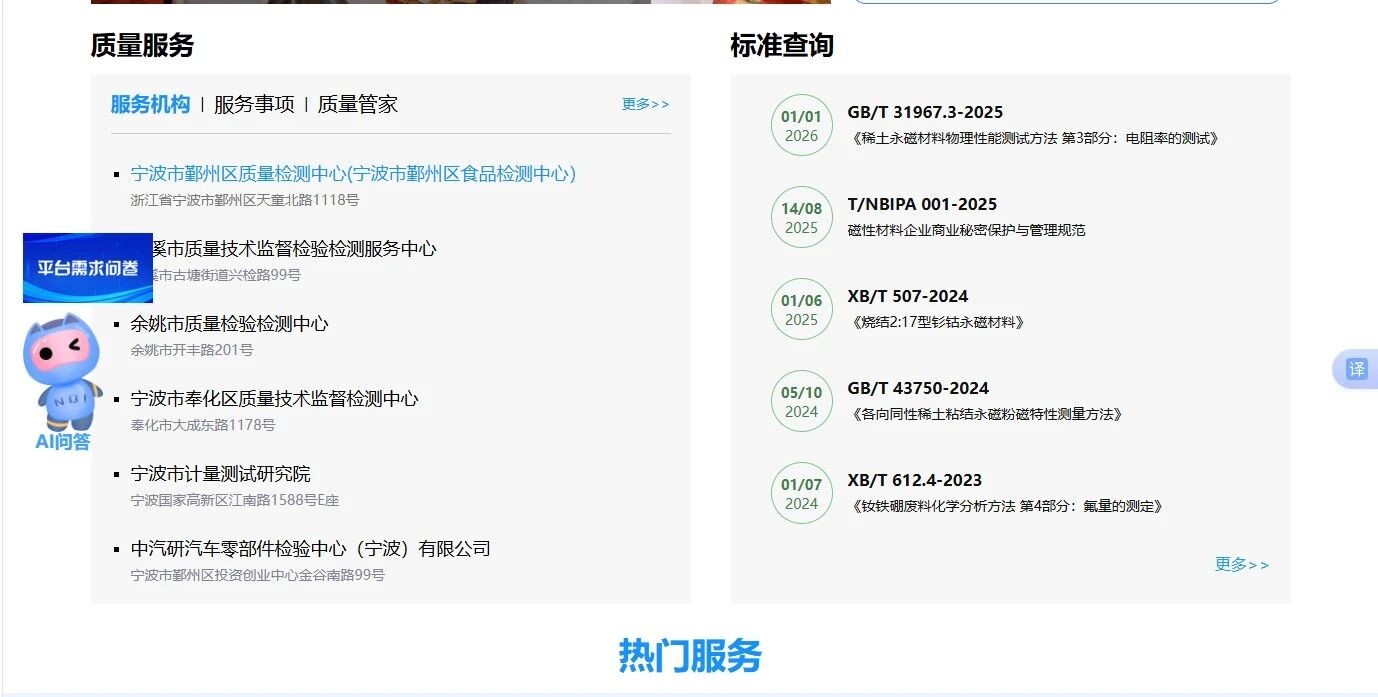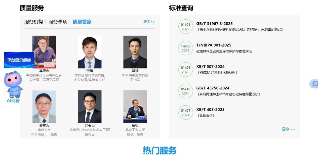 高端新材料(稀土永磁)产业质量基础设施“一站式”服务平台