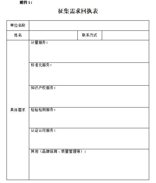 同时为厘清服务需求,推动平台精准对接,更好助力产业提质提效,在宁波市市场监督管理局的指导下,现面向行业征集服务需求,有需要的企业可填写下列需求回执表反馈。