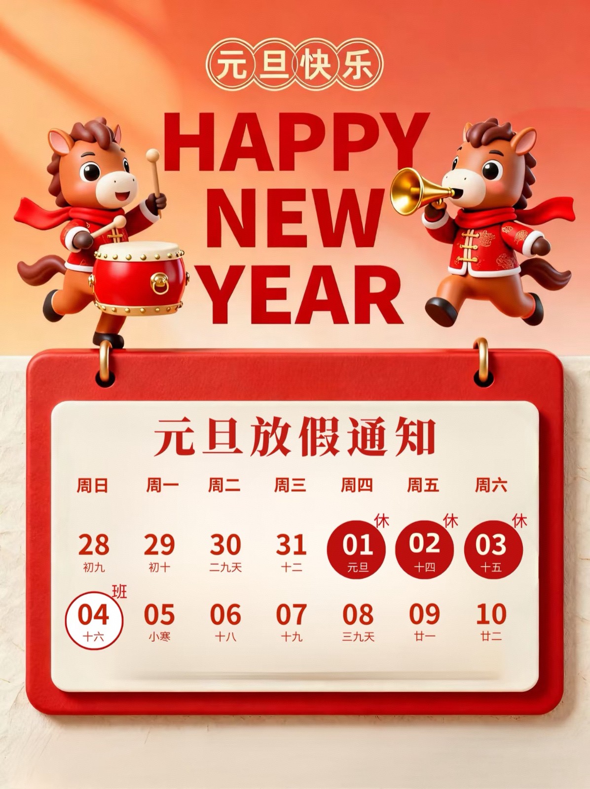 旧岁千重锦,马年再进百尺竿 2026,愿大家策马扬鞭,万事顺遂,马到成功,元旦快乐! 宁波市磁性材料商会元旦放假通